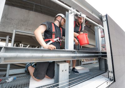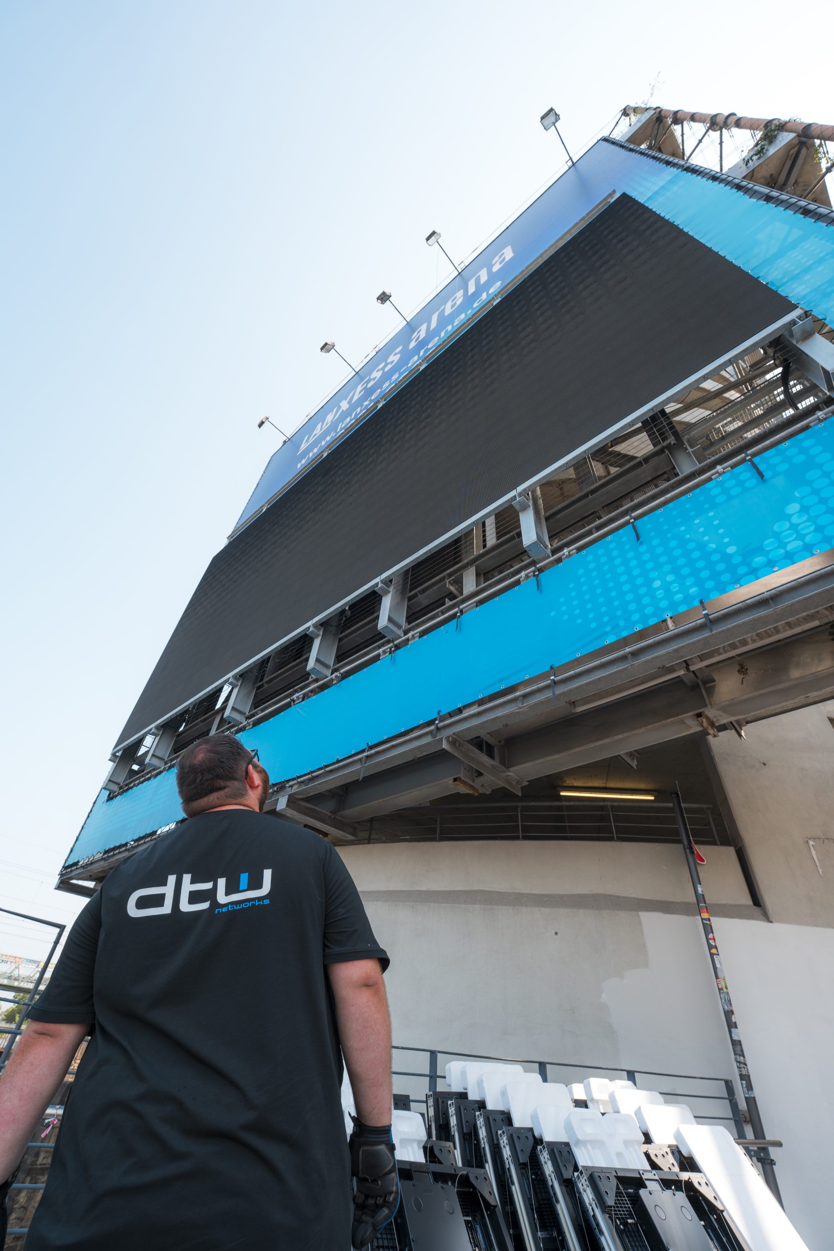 Große Projekte brauchen starke Teams. 152 LED-Module, zwei Wochen Montagezeit, drei Männer auf der Baustelle – so haben unsere Techniker und Obermonteure in Köln die neue LED-Wand an der LANXESS arena realisiert.